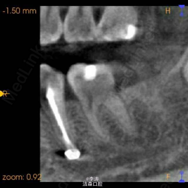 遇一病人女性,20岁左右,两年前于外院35牙根管治疗,超充,正好超充于颏孔部位,患者现在还没有神经症状。该怎么补救?根尖手术,还是根管再治疗?或者有没有什么好办法?如果持续留在颏孔里面,久了会不会对神经产生什么影响?比如麻木???