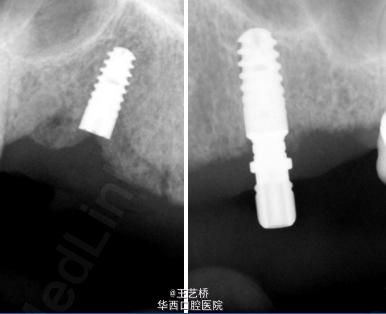 诊断:牙列缺损 影像显示13、23牙槽骨质条件较好,可行种植手术,故制定种植体支持式可摘局部义齿。