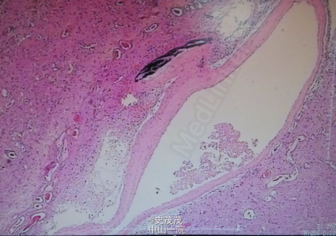 术后病理:左枕叶占位:4.5*3.5*1.8cm组织一块,切面灰红灰白,局部见囊腔。诊断提示 (左枕叶占位)结合临床,病变符合动静脉畸形。