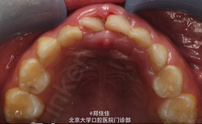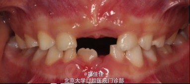 5ys F 主诉:左上前牙外伤后1周 现病史:约1周前,患者上前牙撞于浴缸上,否认头晕恶心及意识丧失,有牙龈出血,曾于外院就诊,给予“消炎药”,否认牙齿自发痛,有牙齿松动