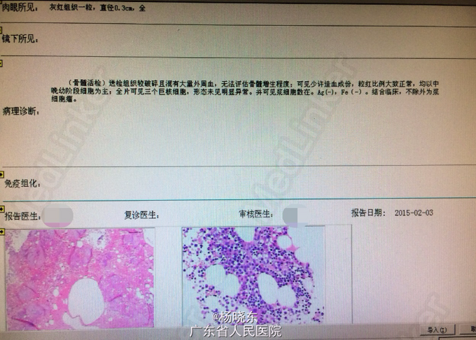 查体:贫血貌,心肺腹查体无特殊。 辅查: 1.全长双下肢长骨正位+尾椎正侧位+肋骨正位+右关节正位+骨盆正位+腰椎正侧位+下胸椎正侧位放射常规照片示:考虑多发性骨髓瘤(多发骨病变)。1、颈椎退行性变 2、腰椎退行性变;多个椎间盘病变;L1椎体轻度压缩性骨折。3、胸椎退行性变。 2.骨髓活检:可见少许造血成分,粒红比例大致正常,均以中晚幼阶段细胞为主,全片可见三个巨核细胞,形态未见明显异常。并可见浆细胞散在。 3.骨髓-外周血涂片:MM-骨髓增生活跃,浆细胞占58.0%,其中原幼浆占53.5%,外周血占2.0%。