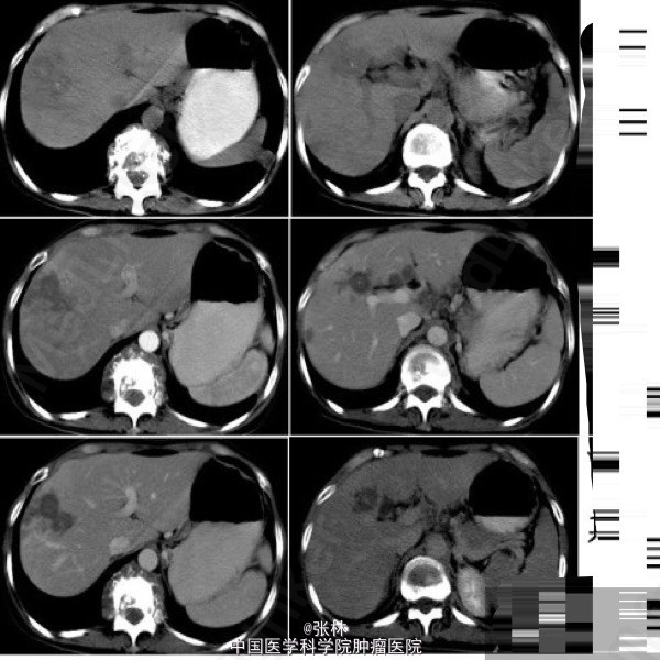 肝结核 Hepatic tuberculosis 肝结核是一种少见病,且多继发于其他器官结核的播散。 发生在肝实质的结核大致可分为:粟粒型、结节型和混合型。 (1)粟粒型:较常见,为多发或弥漫粟粒状小结节灶(直径≤2cm),常为全身结核的一部分,临床诊断并不十分困难。影像学可见肝肿大和细小结节灶。对非钙化性病灶直径< 0.5 cm者,CT、MR检查大多难以发现。 (2)结节型:直径> 2 cm,较少见,由粟粒灶或细小结节灶融合而成,因易于发现而国内外文献报道多为这一类型。若结核性肉芽肿液化坏死不明显或病灶以纤维组织为主,CT表现为低密度肿块影,病灶可呈轻度边缘强化,影像学表现无特征,诊断困难。当结核性肉芽肿内钙盐沉着时,可在病灶内出现斑点状甚至“粉末状”钙化灶,有一定的特征性。 (3)混合型:即粟粒大结节型,CT表现为多发粟粒状钙化伴单发结节状低密度灶。多发不同密度改变的病灶为肝结核较为特征的CT征象。这种表现反映肝结核同时存在不同病理时期的病灶,包括结核性肉芽肿、液化坏死、纤维化或钙化。 肝结核的其他表现:腹腔淋巴结肿大;“卫星灶”;脾肿大或感染结核;肝外结核史或结核接触史。肝外结核史在肝结核的诊断中尤为重要。 患者目前规律抗结核治疗中,三药联合。暂未返院复查。