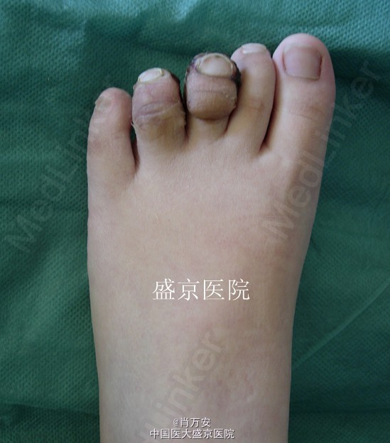 左足三四趾巨趾畸形,足趾粗大,外形不美观。