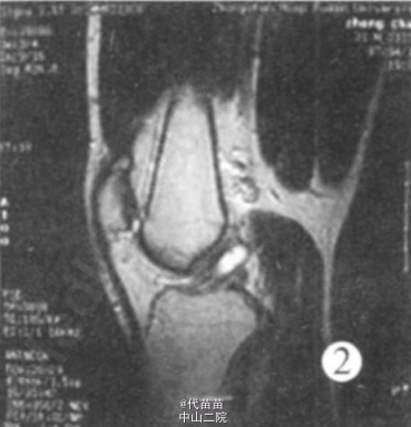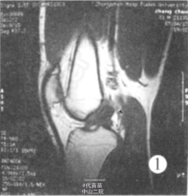 患者, 男, 35岁。 患者 1 个月前无明显诱因突发左膝关节疼痛。 疼痛为持续性, 深蹲时加重, 伸膝时可略缓解。 对症治疗无明显好转。