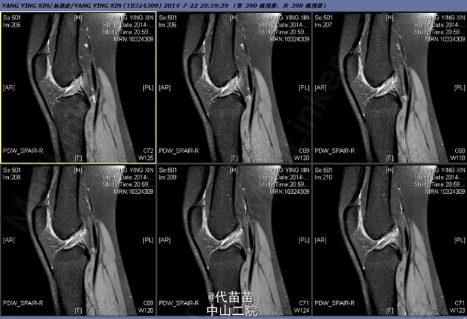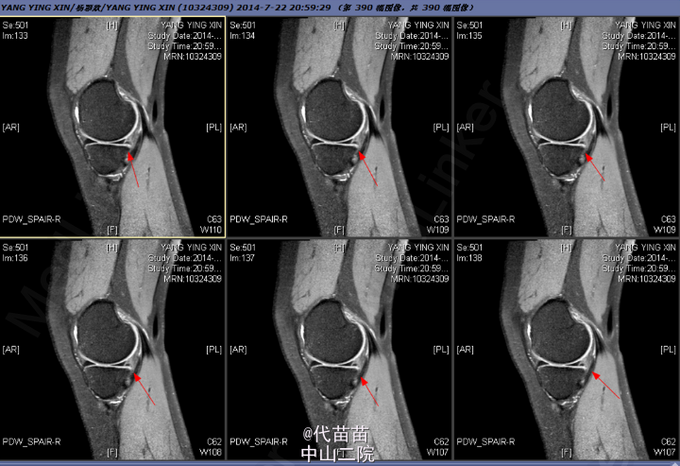 患者女,27岁,因扭伤后右膝关节不适2月余入院。