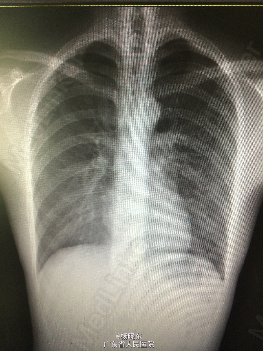 主诉:间断性胸闷、胸痛3年余,再发10余天。 病史:患者于3年余前出现左侧胸闷、胸痛。于当地医院就诊,诊断为左侧气胸(肺压缩10%),予对症处理(具体不详),1年余前再次出现左侧胸痛,于当地医院对症处理后好转,10余天前再次出现左侧胸痛,呈隐痛,无放射性牵涉痛,可忍受。自起病以来,精神睡眠胃纳可,大小便正常,体重无明显变化。