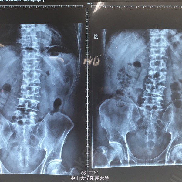 患者男,64岁,两年前于外院因"胃溃疡穿孔"行"胃大部切除术"。一天前无明显诱因出现上腹疼痛,程度剧烈,刀割样,急诊行腹平片检查:双膈下游离气体。