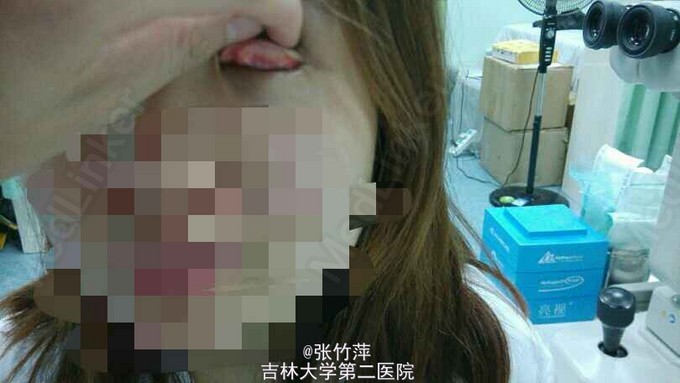 裂隙灯检查示睑结膜瘢痕,靠近鼻侧有一针尖大小的黄点。