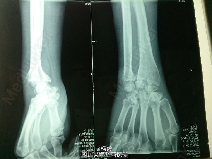 考虑腕关节骨关节炎,建议入院行融合手术。