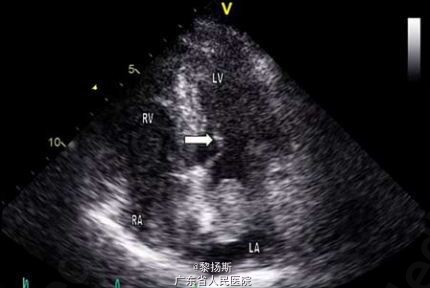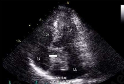 体格检查发现患者双侧膝盖网状青斑(图 1)。收入院时,患者体温 38.5℃,心率 165 次 / 分,呼吸 28 次 / 分,血压 89/50mmHg,血氧饱和度 94%(无额外吸氧)。心脏查体闻及 2/6 级全收缩期杂音,以心尖部最为明显,余检查未见明显异常。实验室检查发现白细胞增加至 15.7×109/L(参考值范围 3.8–11×109/L),中性粒细胞占 95%,血红蛋白 127g/L,血小板 306×109/L,C 反应蛋白升高至 73mg/L(参考值范围 0-5mg/L),另外,尿素和肌酐轻度增加,自身免疫抗体阴性,尿常规正常。心电图提示窦性心动过速,无 PR 间期延长,胸部 X 线检查无异常。血培养结果提示存在少酸链球菌(S. acidominimus),对青霉素和红霉素灵敏。进一步经食道超声心动图(TTE)检查提示左房纵向扩张,伴一大小为 2.8×3.2cm,附着于房间隔的部分活动性结构(图 2)。另外,二尖瓣上也附着有赘生物(图 3)。