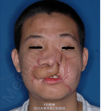 整个过程中最复杂最具有挑战性的部分就是如何重建患者的面部外形和恢复功能,重建过程如货物设计,安排,操作需要都是深思熟虑的。目前病例中只初步恢复了患者外观,后续功能恢复有待观察。