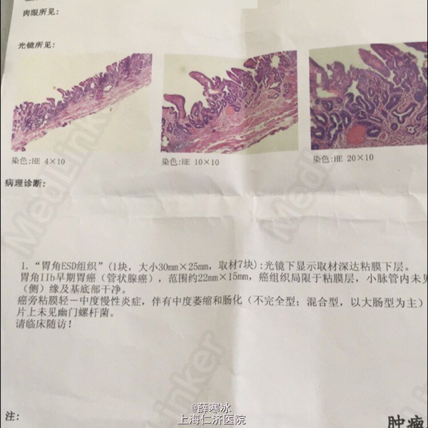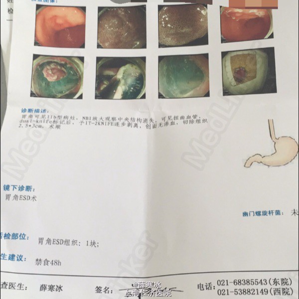 CT(一) NBI十放大内镜检查:胃角病变处腺管结构消失,可见异型血管,有边界