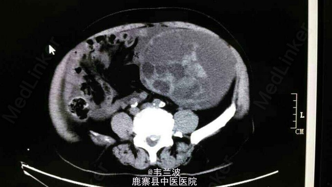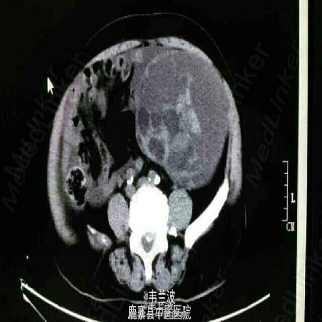 中老年妇女,发现腹部包块半年。其他病史不详,未作增强。大家讨论一下什么疾病可能性大。