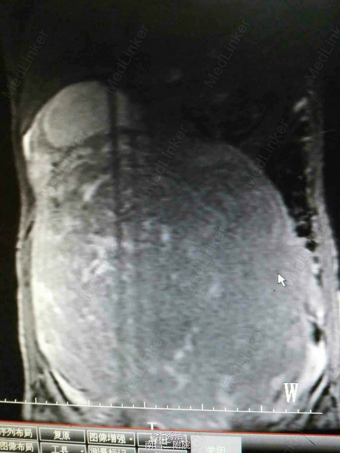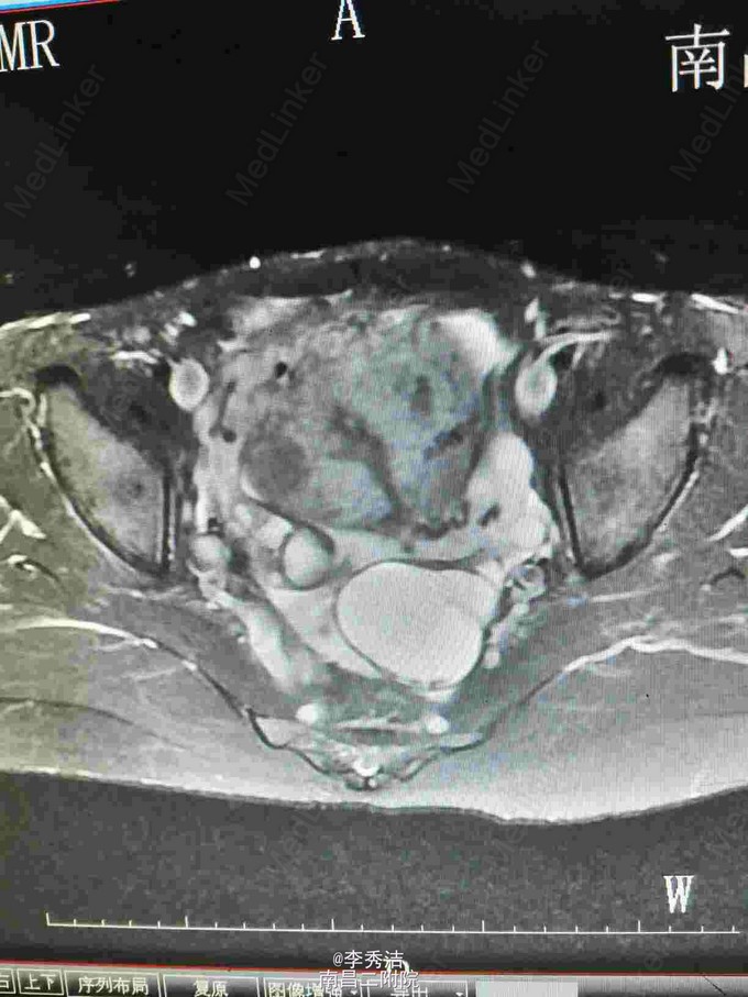 患者女,39岁,因“发现子宫肌瘤5年,下腹胀2月”入院。患者自诉5年前在当地医院行彩超发现子宫肌瘤,未予以重视。5年来感腹部进行性增大,2个月前出现下腹坠胀不适。今为进一步就诊,特来我院。