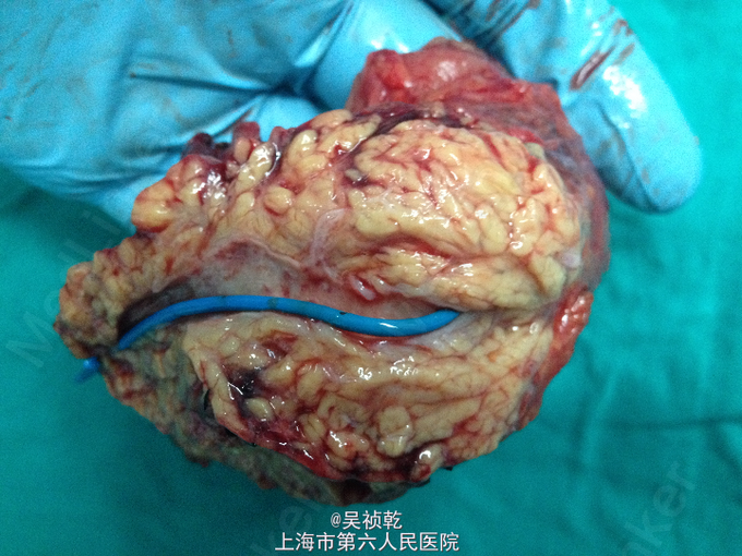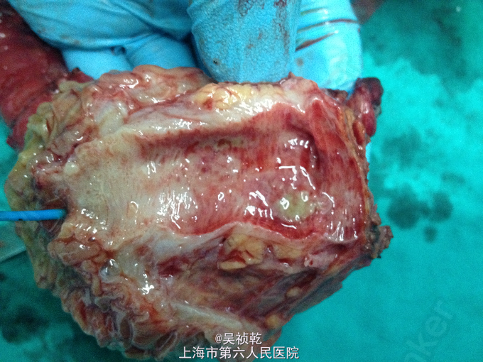 随访:1. 此患者手术后恢复顺利,术后10天恢复情况良好出院。2. 患者术后一月门诊随访时一般情况良好。 讨论:此患者入院时的症状不典型,尤其是患者无黄疸症状,但是影像学检查提示胆囊及胆管扩张,结合ERCP活检明确癌后才行Whipple术,至于为什么此患者无黄疸症状,可能和此患者的左右肝胆管交汇处位置偏低,胆管梗阻只限于右肝管,且胆囊管开口汇合于右肝管有关,这和患者先天的胆管发育异常有关,若患者未及时治疗有可能延误病情。