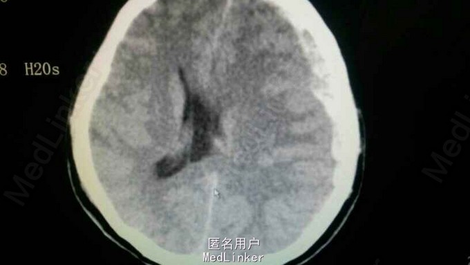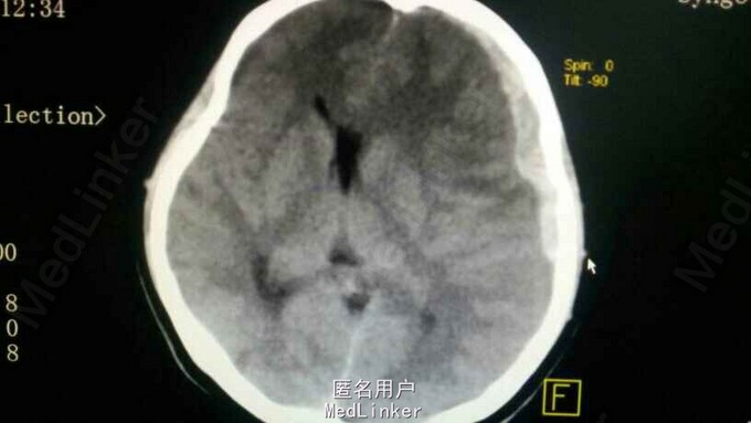 诊断:继发性脑干损伤,左侧额颞顶部急性硬膜下血肿,右侧颞骨骨折,外伤性蛛网膜下腔出血,右枕部头皮血肿。 治疗:急诊给予开颅血肿清除及去骨瓣减压术,术中取左侧额颞顶标准大骨瓣,术中见左侧颞叶脑挫裂伤,外侧裂皮层血管出血,脑膨出逐渐加重,静点甘露醇和切除部分颞极减压后迅速缝合。术中血压一直尚可,术终血压下降,70/45左右,呼吸微弱20左右,心率75左右,指脉氧100,未能复查头颅CT,速返病房抢救,给予多巴胺维持治疗16小时后,患者偶发呼吸暂停,呼吸机治疗后患者家属放弃治疗,回家!