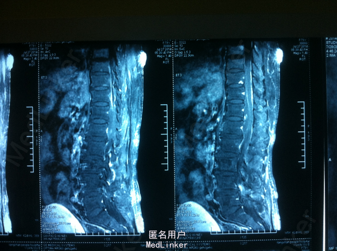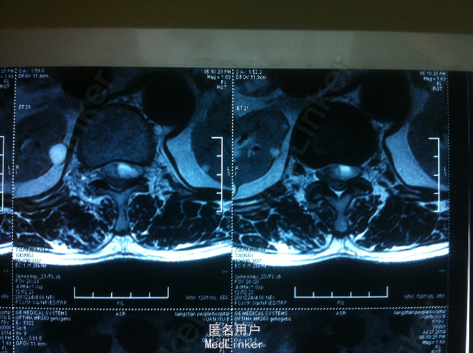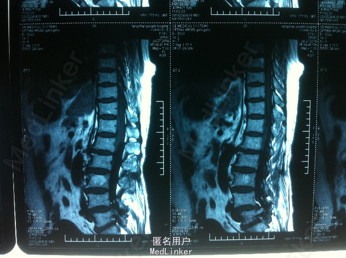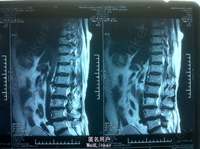 诊断:自发性腰椎硬膜外血肿 患者入院后给予甘露醇、甲泼尼龙、甲钴胺、神经节苷脂等药物,第二天,双下肢麻木较前减轻,双下肢肌力3-4级,与患者及家属沟通后,患者家属拒绝手术减压血肿清除,继续给予消肿、营养神经药物治疗,入院第5天,患者双下肢麻木明显消失,双下肢肌力4-5级,好转出院。