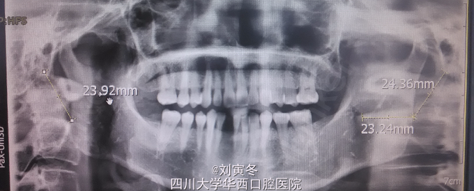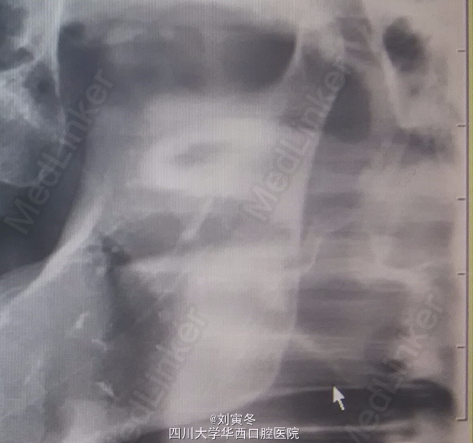检查: 未扪及双侧颈部淋巴结肿大,双侧关节检查无明显阳性体征 口内未见明显包块病变,咬合关系良好 咽侧壁触诊可引出不适 全景片: 右侧茎突长度约3cm,左侧茎突形态异常,长度约4cm