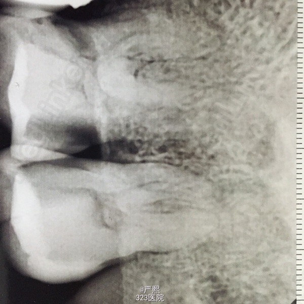 检查:26,27吻合邻面深龋坏,冷测极敏感,探痛明显,叩(+),松(-)。 辅助检查:RVG示26,27吻合邻面深龋坏,龋深及髓。26,27髓腔内可见大块髓石。