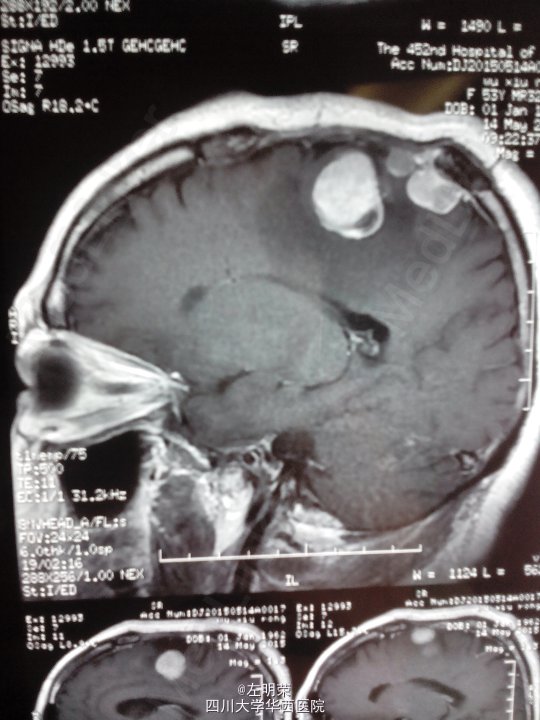 1、多发脑膜瘤 2、继发性癫痫