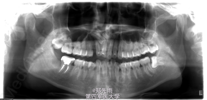 正畸要求拔除埋伏牙转诊。 正畸要求拔除上前牙区埋伏13、多生牙以及24、34、44、18、28、38.