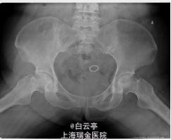 主诉:左侧髋关节疼痛2月。 现病史:患者近2月长时间步行后感左侧髋关节疼痛,疼痛位于腹股沟中点,休息后可有缓解。患者既往sle,长期服用强的松5mg,qd。