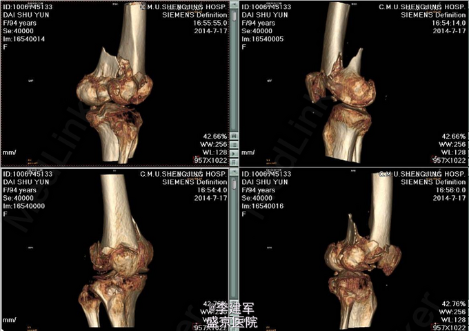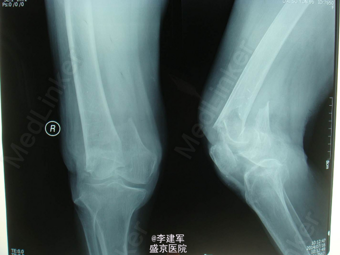 右股骨髁上粉碎性骨折 患者高龄,完善心电图,肺部CT,生化检查等,查无手术禁忌症。择期手术治疗。 手术拟行右股骨髁上粉碎性骨折闭合复位内固定术。 决定使用Liss钢板