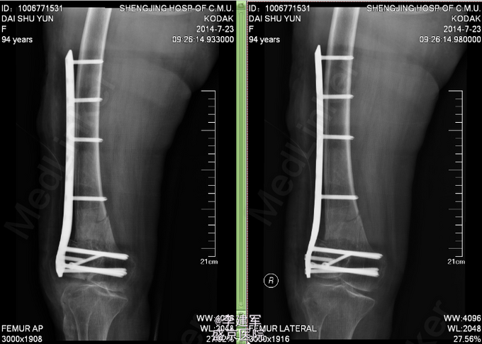 患者高龄选用Liss钢板做闭合复位,减小手术创口。