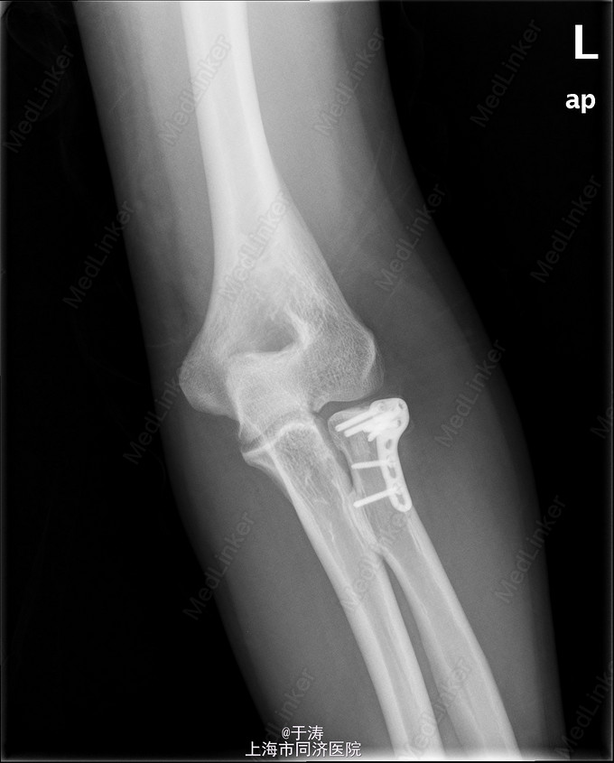 诊断为左桡骨头骨折 予完善围手术期准备后行左桡骨头骨折切开复位内固定术。