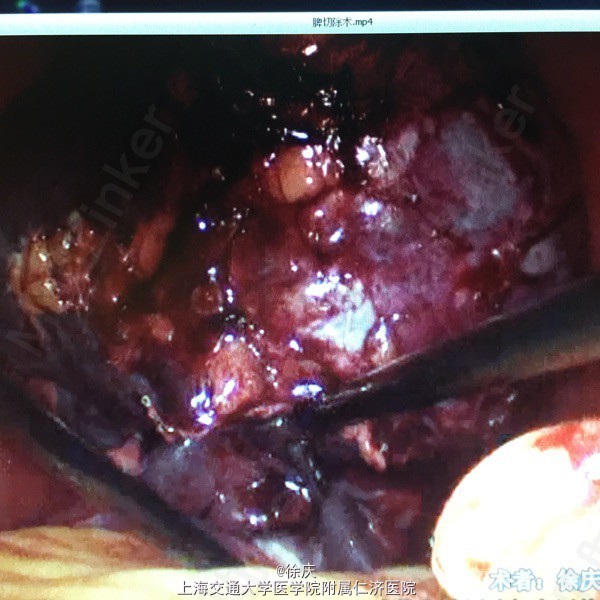 先游离胰尾,穿过丝带控制脾蒂,腔镜手术就安全了。