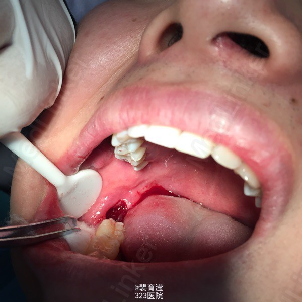 随访:口服消炎药 ,止疼药后无不适,一周后拆线 讨论:阻生齿拔除 先去处阻力。