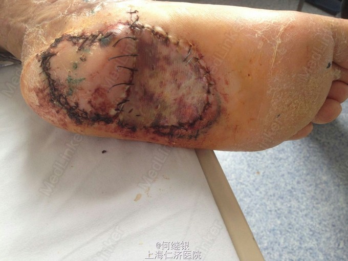 皮瓣顺利成活。植皮成功。感染控制。顺利出院。