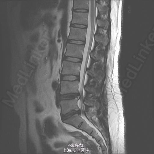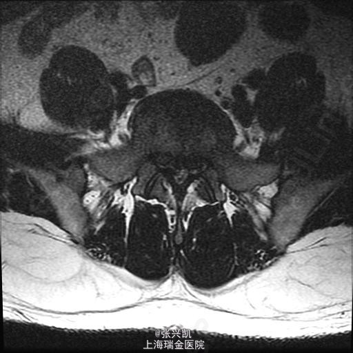 查体:脊柱无侧弯畸形,双上肢感觉活动良好,双侧股四头肌肌力正常,跟、膝腱反射(+),右腿直腿抬高试验45°,左侧70°,右侧足踝外侧麻木感 辅助检查:腰椎MR示:L4-5,L5-S1,椎间盘突出,相应节段伴狭窄,腰椎退行性改变,L5,S1相邻终板变性。