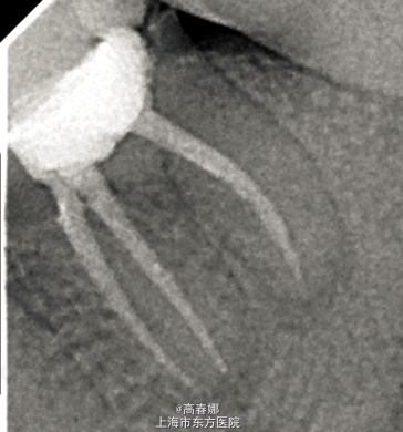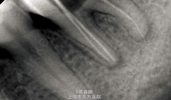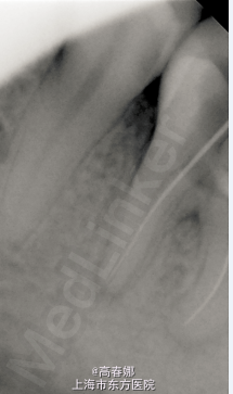 随访:两周后复诊,患牙叩诊无不适,牙龈无红肿。 讨论:干髓术治疗失败,常发生根尖周炎。同时干髓术,随着时间的推移会导致根管钙化,造成根管细小,严重者导致根管闭锁,给根管治疗带来一定的难度。