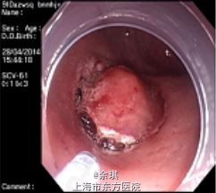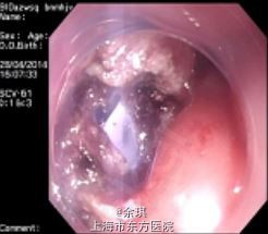 行腹腔镜+ESD:氩气沿病灶周边标记后,以生理盐水+靛胭脂行粘膜下注射,以Dual knife环周切开粘膜,再以IT刀及VS knife沿病灶周边剥离,完整切除病灶。剥离病灶后检视创面,见0.3*0.3cm大小穿孔。用多枚金属夹夹闭创面,并用腹腔镜连续缝合穿孔部位。术毕置三腔喂养管于十二指肠降部。