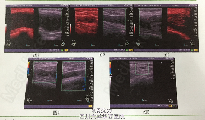 查体:双乳丰,欠对称,双乳全乳质韧波动感肿块,右腋皮下1.2*1cm光滑质韧肿块,彩超及X线如图: