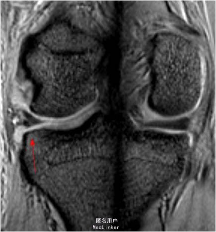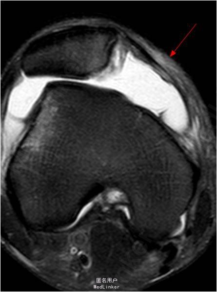 患者男,20岁,因”扭伤后右膝关节疼痛3周”入院。患者受伤时自觉右膝髌骨往外脱位,后自行复位。