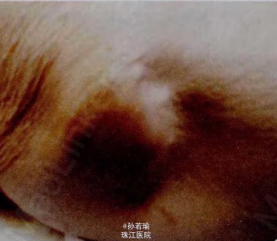 术后随访1年,未复发,恢复日常生活,侧卧位不影响睡眠。 讨论: C 是一 种 非 肿 瘤性 的无 定形 钙 盐 沉 积 , T C 多发 于关 节附近 的软 组织 内,最常 见于臀部大粗隆、肩部、肘后部,也见于手、足和膝部,病因及发病机制不明 。临床表现 :大部分患者健 康情况 良好 ,钙沉 着部 位可 出现肿胀 、疼痛 、被覆皮肤溃疡 、瘘管形成或局部有 白垩样物质流出 。鉴别诊断 :①慢性 肾病 、尿 毒症及继 发性 甲亢 时的钙化 ;②钙化性肌腱炎 ;③ 高维生 素 D 症 及肿 瘤性 或炎 症性 骨质破坏的转移钙化 ;④骨化性肌炎 。 治疗方案:尽早外科手术切除。 对于有代谢障碍的患者应纠正磷代谢异 常 ,某些 病例手 术切除 后可复 发 ,并 出现 更大 的损伤由于大面积剥离创面 ,若仅缝 合皮肤 切 口, 即便 是深 层放置引流管 ,皮下发生血肿或积液而导致不愈合 的概率也 相当高 ,需再次手术切开引流或长期换药达到二期愈合 。 鉴 于此 ,我科采用一种较大剥离创面 的闭合方法——渔 网状 全层缝合法 ,此方 法使皮 肤 与筋膜 层 全方位 紧密 贴 附 ,避免 “ 死腔”形成 ,有效地提高创面一期愈合率 ,缩短住 院时 间及治 疗费用 ,减轻了患者的痛苦 。 该 方法同样适用 于其 他较 大的术后创 面 ,如体表脂肪瘤 、滑囊炎 、血 肿等的外科手术处 理。引自《骨科》, doi:10.3969/j/issn.1672-8573.2015.02.014