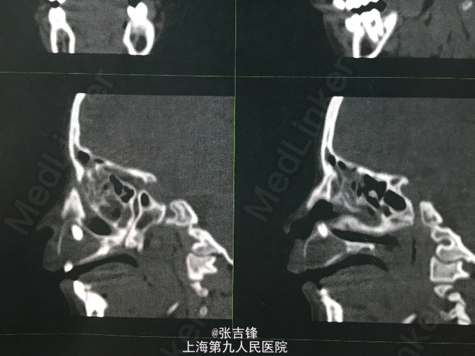 上颌骨囊肿 恒牙胚部分缺如 治疗方案:先行上颌骨囊肿开窗减压术,待囊肿缩小后再行手术