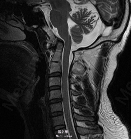 患者2年前无诱因出现后颈背部疼痛,呈胀痛性质,并伴有颈部及双上肢僵硬,休息后稍缓解,无头晕、恶心、呕吐等症状,就诊于其他医院,行MRI及颈部X片示:颅底凹陷症及寰枢椎脱位,建议患者手术治疗,患者要求暂行保守治疗,遂口服颈痛颗粒1包/tid、独一味胶囊3粒/tid、西乐葆200mg/bid,口服后症状未见明显缓解。6月前患者自觉颈背部疼痛发作频率增加,且疼痛时间延长及疼痛程度增加,同时伴右上肢麻木,并反复发作,为求手术治疗,患者来我院门诊,并以“颅底凹陷症 寰枢椎脱位”收入我科。