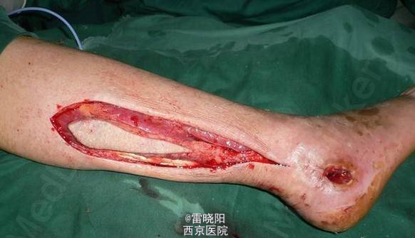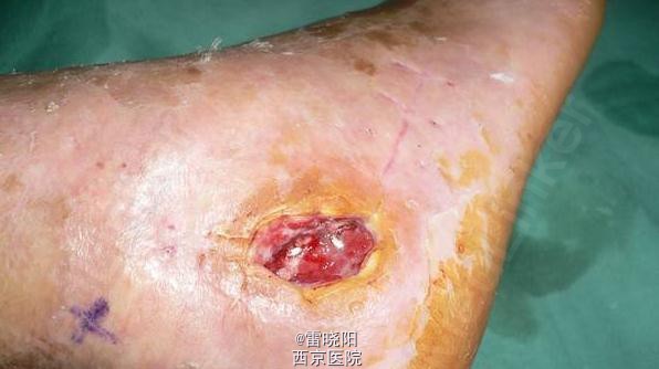 患者女性,62岁,跟骨骨折切开复位钢板内固定术后钢板螺丝钉外露半个月