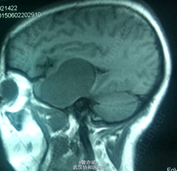 主诉:左眼视力下降十余年 简要现病史:患者10余年前出现左眼视力下降,当时未在意,近期右眼视力下降,行CT提示颅内占位。
