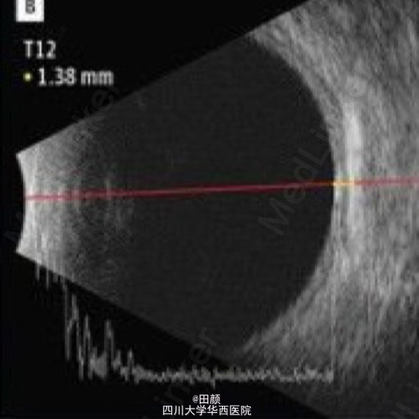 1周后肿物缩小,左眼视力维持在0.67左右。后来肿瘤高度以每年约2.3mm的速度逐渐缩小,直到近两年维持在小于2mm的状态。在最后一次随诊中,病灶对应巩膜面可见大小约4.5*3.0mm的色素沉着物。散瞳眼底检查可见脉络膜轻微隆起的灰色病灶,周围色素上皮萎缩。那么此色素沉着物是肿瘤复发?单纯色素?还是其他什么原因?