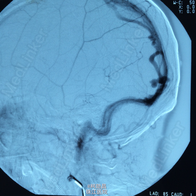 查体:神经系统检查无明显阳性体征。 全脑DSA提示为左枕硬脑膜动静脉瘘