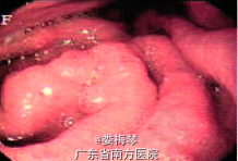 诊断:乙肝后肝硬化、食管胃底静脉曲张、门脉高压性胃病、胃多发性息肉 治疗:入院后给予奥美拉唑40mg,2次/d静脉抑酸治疗,奥曲肽50μg/L降低门脉压力治疗,胃息肉部分进行胃镜下电切除,术后未见出血,患者病情好转并于2010年7月17日出院。