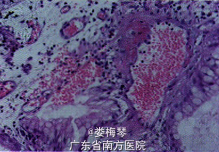 随访:随访中得知,患者停用埃索美拉唑1周后,又出现了呕血,6 h后行紧急胃镜检查发现胃腔内充满新鲜血液,未见食管静脉曲张破裂出血的表现,考虑仍为门脉高压性胃病所致。再次给予奥曲肽50μg/L降低门脉压力处理,5d后停用,患者好转后出院。 讨论:本例患者在停用PPI一周后出现呕血,出血原因考虑与其停用PPI后,造成胃内pH值的反弹,从而加重胃黏膜的损伤。本身PHG因其表层血供的减少,导致防御机制明显下降,使黏膜的渗透性及脆性增加,容易加剧其出血倾向,因此对于预防肝硬化患者的上消化道出血,PPI的长期应用还有待考证。【天津医药】doi:10.3969/j.issn.0253-9896.2013.03.033