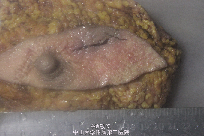 查体:生命体征平稳。神清,双乳对称,双侧乳头无凹陷,局部皮肤无红肿,无溃疡,无皮疹,无酒窝征,无桔皮样改变。右侧乳腺外侧9点钟方向,可见一3cm手术疤痕, 距离乳头约3cm,挤压双侧乳头无液体流出。左侧乳腺未及明显肿物。双侧侧腋窝未扪及肿大淋巴结。