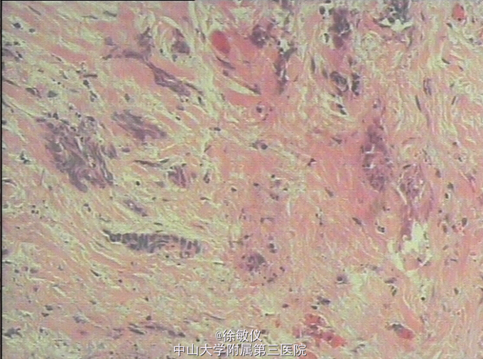 中年女性,主诉:发现乳腺肿物5天。 现病史:患者5天前无意中发现右乳肿物,为椭圆形,约2cm×3cm大小,质硬,无明显疼痛,无伴压痛,无伴乳头溢液、畏寒、发热,遂于龙岗中心医院进行肿物部分切除术,术中病理结果诊断为乳腺癌,未继续行根治手术,具体不详。现患者为求进一步治疗来我院。