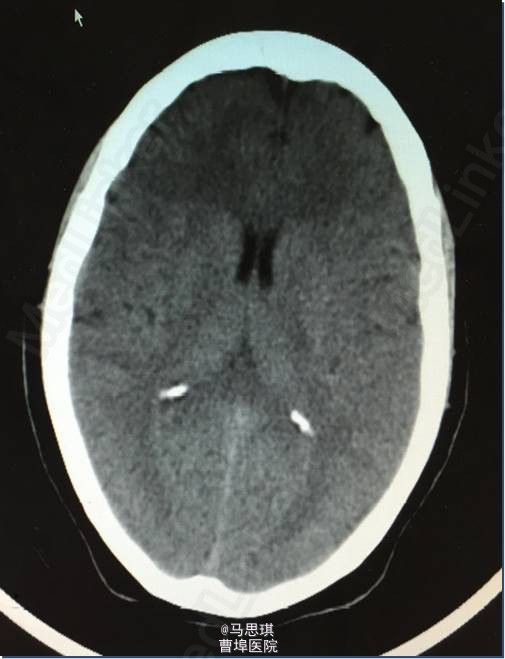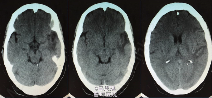 查体: PE:BP107/51 mmHg,双侧颈动脉未闻及杂音,双肺(—),心率80次/分,律齐,各瓣膜听诊区未闻及病理性杂音,腹(—),双下肢不肿。 NE:神清,部分性混合性失语,右侧轻度中枢性面舌瘫,右上下肢肌力Ⅴ-级,左上下肢肌力Ⅴ级,感觉对称、存在,腱反射++,病理征(—)。NIHSS评分:2分。 实验室检查:血常规示:WBC 14.3*10^9/L,中性粒细胞 80.8%,PCT 0.32 ng/ml。大小便常规、肝肾功能、电解质、血糖、风湿因子、ESR、血液流变学、HCY、血气分析、D-二聚体、心损、免疫全套、凝血、甲状腺功能、肿瘤标志物、腹部彩超、胸片正常,HIV(—),梅毒(—)。 TCho:4.45mmol/L ,HDL-C:1.31mmol/L ,LDL-C :2.41mmol/L ECG:窦性心律,ST改变。 UCG:左房稍增大,左室舒张功能稍减低。 TCD:椎-基底动脉血流速加快。 颈动脉彩超:双侧锁骨下动脉粥样斑块形成(软斑)。 入院头部CT:大脑镰旁多发钙化灶;脑实质未见明显异常改变。