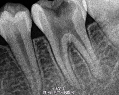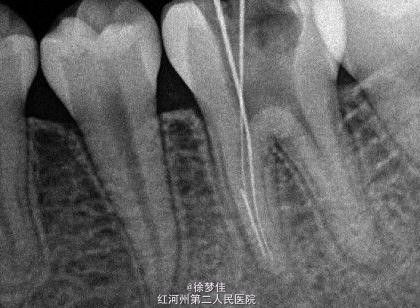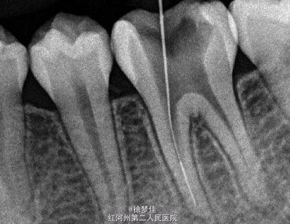 患者女,14岁,于院外行左下后牙根管治疗,断针,无法取出,遂就诊。